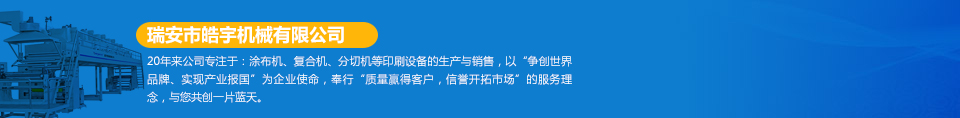 瑞安市皓宇機(jī)械有限公司是瑞安一家私營(yíng)責(zé)任有限公司,注冊(cè)資金200萬(wàn),員工40余人,是具有獨(dú)立法人地位,專業(yè)生產(chǎn)定做各種非標(biāo)準(zhǔn)涂布機(jī)、復(fù)合機(jī)、印刷機(jī)、分切機(jī)、壓膜機(jī)等機(jī)械設(shè)備的制造廠。公司的機(jī)器主要用于生產(chǎn)保護(hù)膜、膠帶、雙面膠、不干膠、相紙、油畫(huà)布、汽車防爆膜、熱轉(zhuǎn)印、燙金膜、離型膜、離型紙、軟包裝印刷、軟包裝復(fù)合、軟包裝分切等各種產(chǎn)品...  [詳細(xì)]